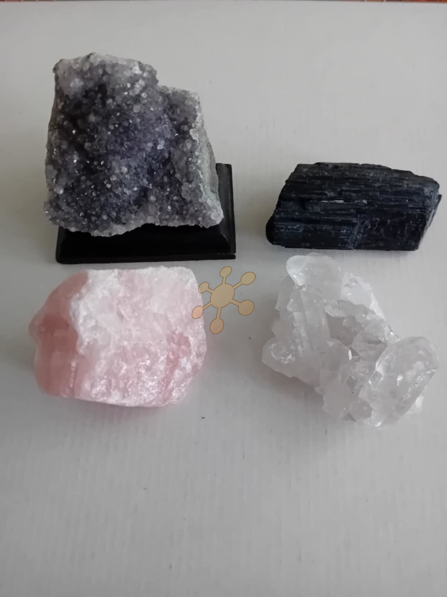 Sada 4 polodrahokamov do priestoru. Obsahuje krištáľ, ruženín, ametyst a turmálín. Celková hmotnosť kameňov je 0,75kg.